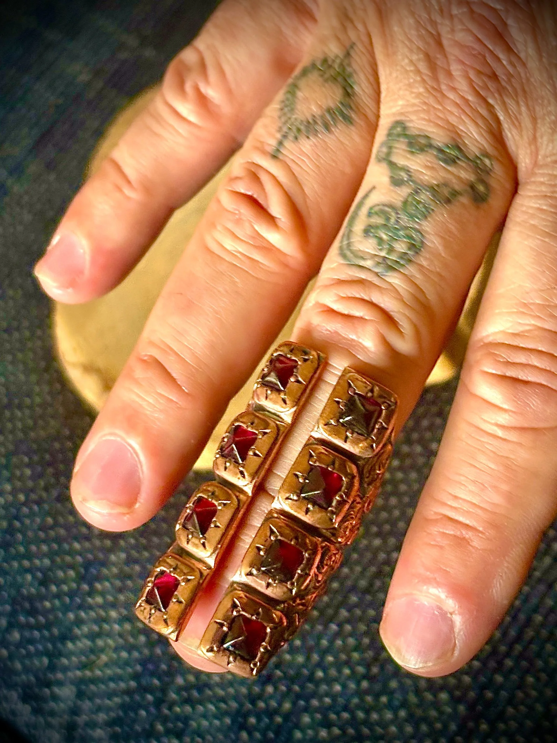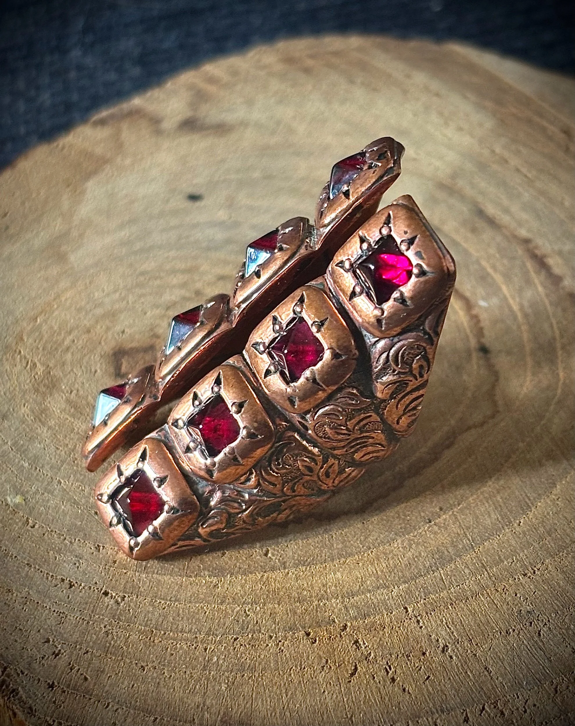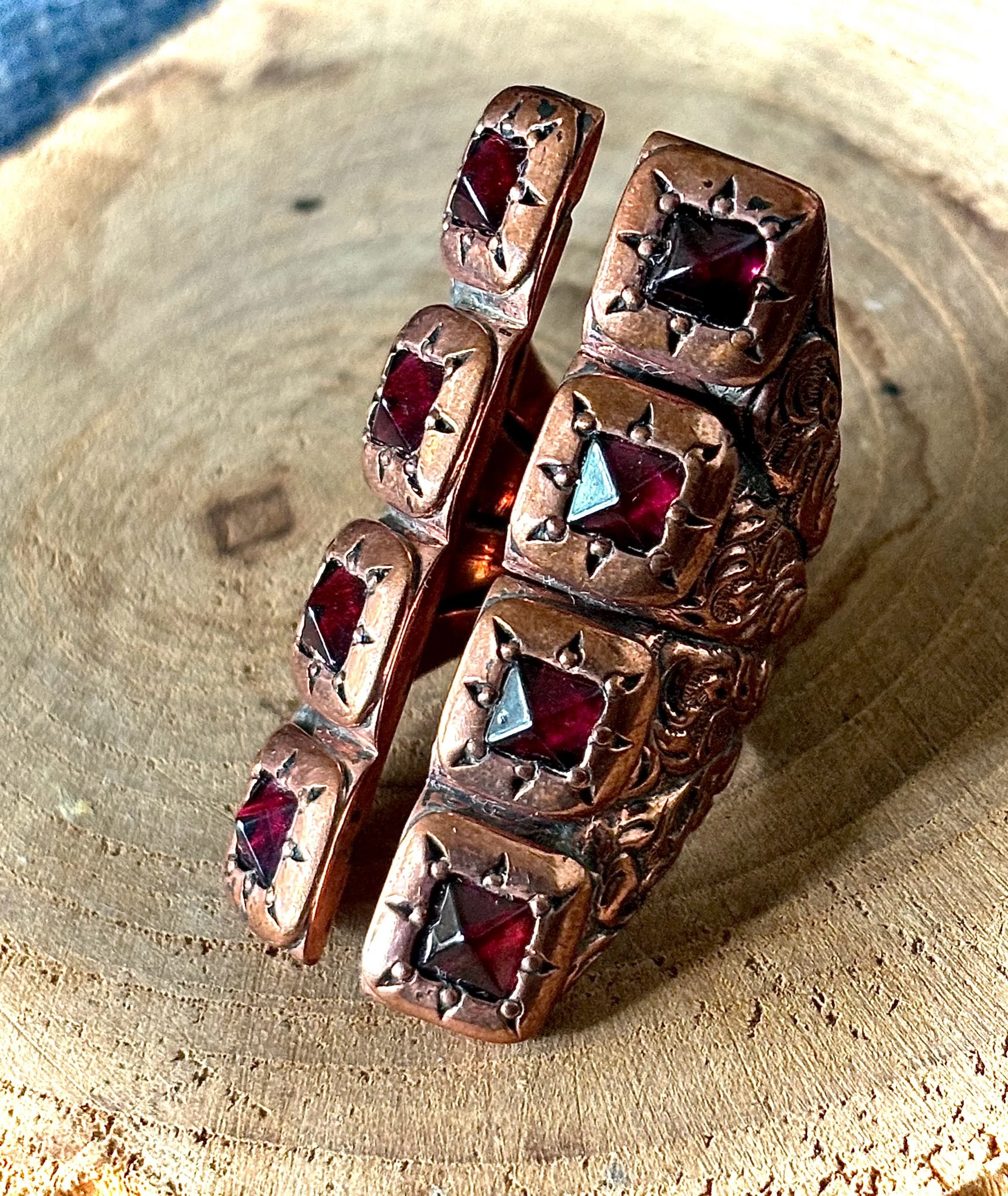 Shop › Red pyramid size 7-8 Image 1 of 4 Image 2 of 4 Image 3 of 4 Image 4 of 4 Red pyramid size 7-8 $420.00 Beautiful African garnets pyramid cutMade in pure copper and lots of love Add To Cart Added! Beautiful African garnets pyramid cutMade in pure copper and lots of love