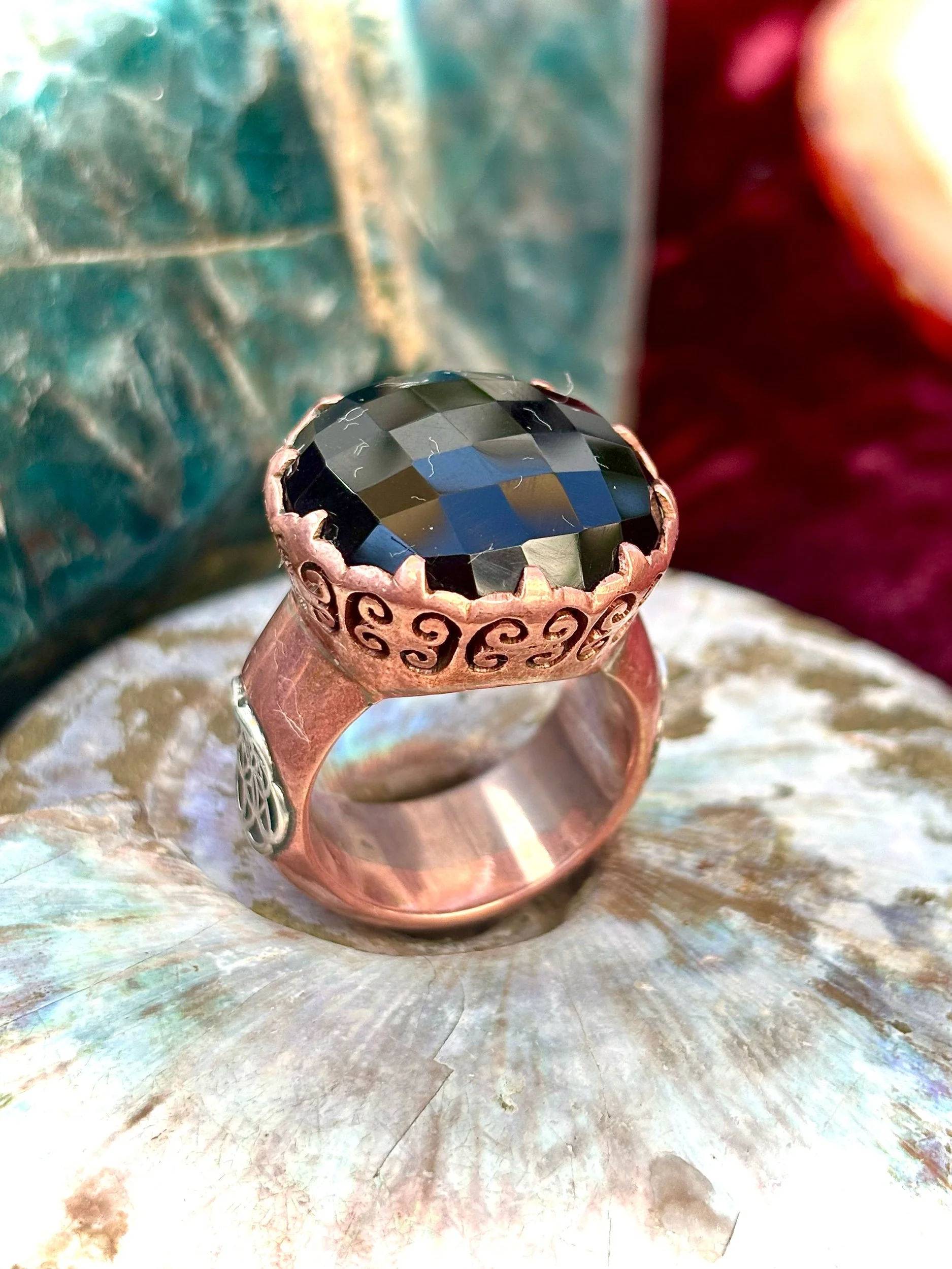 Shop › Black crown size 10 Image 1 of 3 Image 2 of 3 Image 3 of 3 Black crown size 10 $450.00 Beautiful black onyx copper and silver ring made with love and care Beautiful crown setting Size 10 Add To Cart Added! Beautiful black onyx copper and silver ring made with love and care Beautiful crown setting Size 10