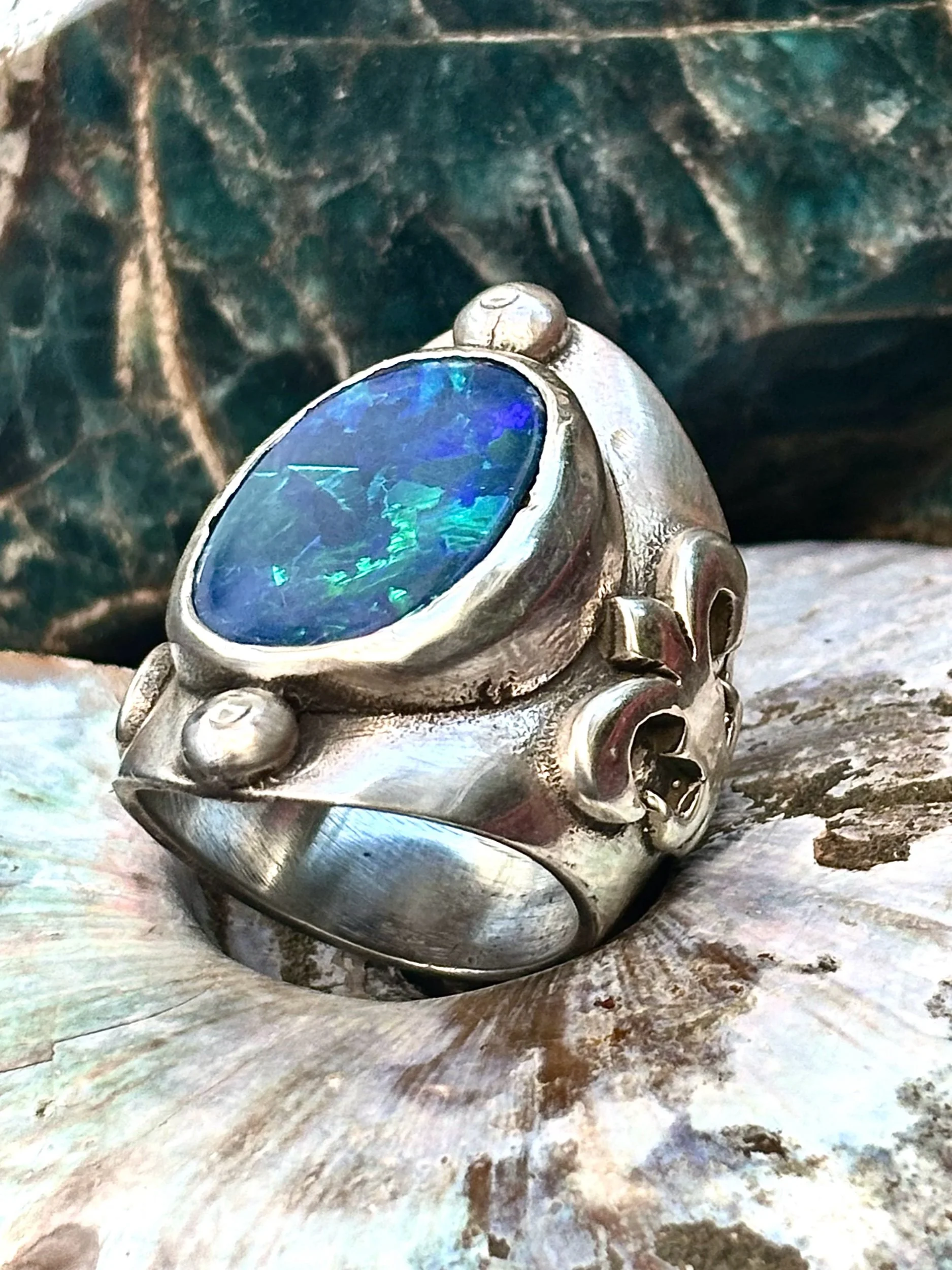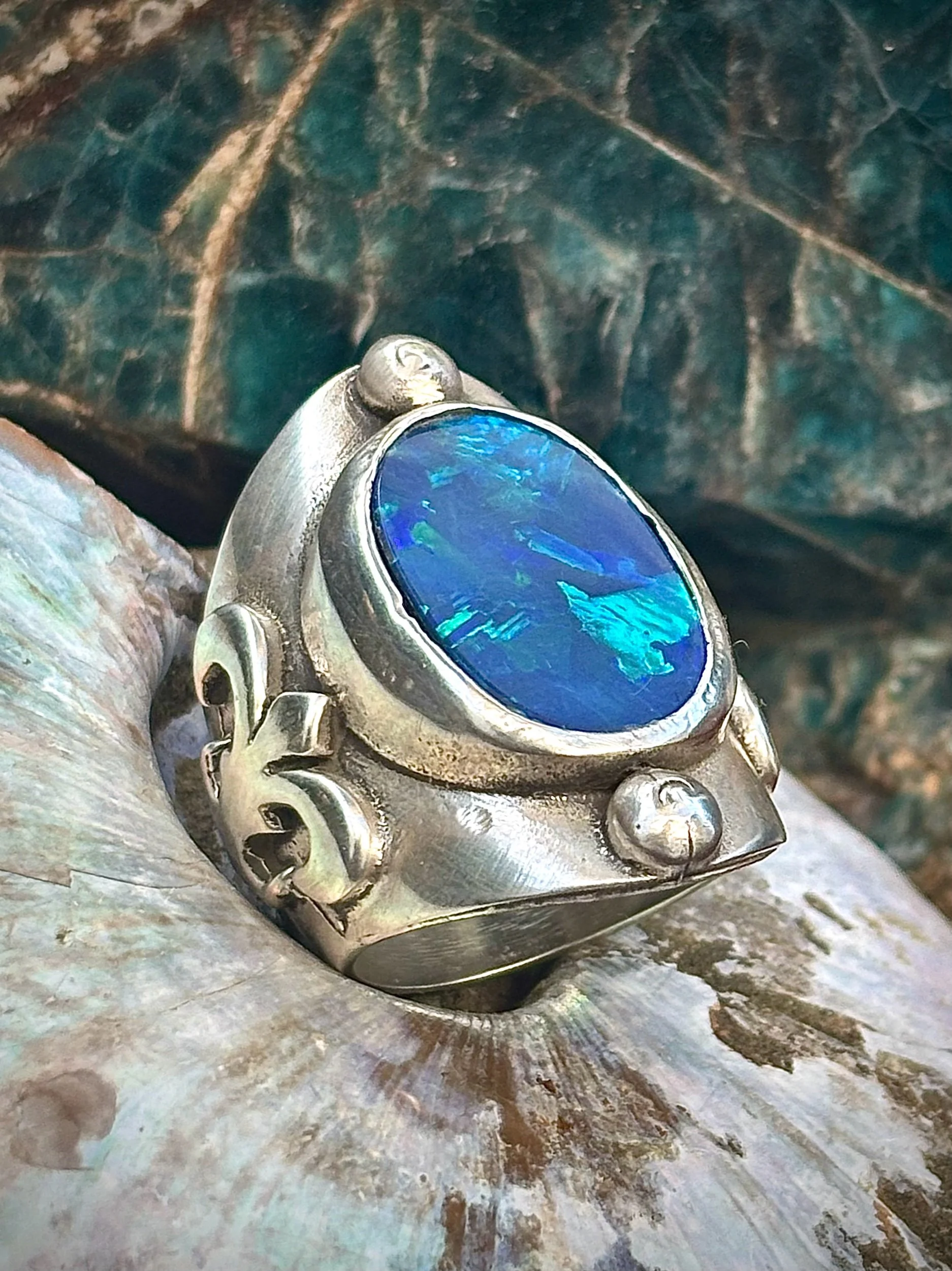Shop › In between the worlds size 9 Image 1 of 4 Image 2 of 4 Image 3 of 4 Image 4 of 4 In between the worlds size 9 $650.00 Beautiful Opal ring in SilverMade with good intention Add To Cart Added! Beautiful Opal ring in SilverMade with good intention