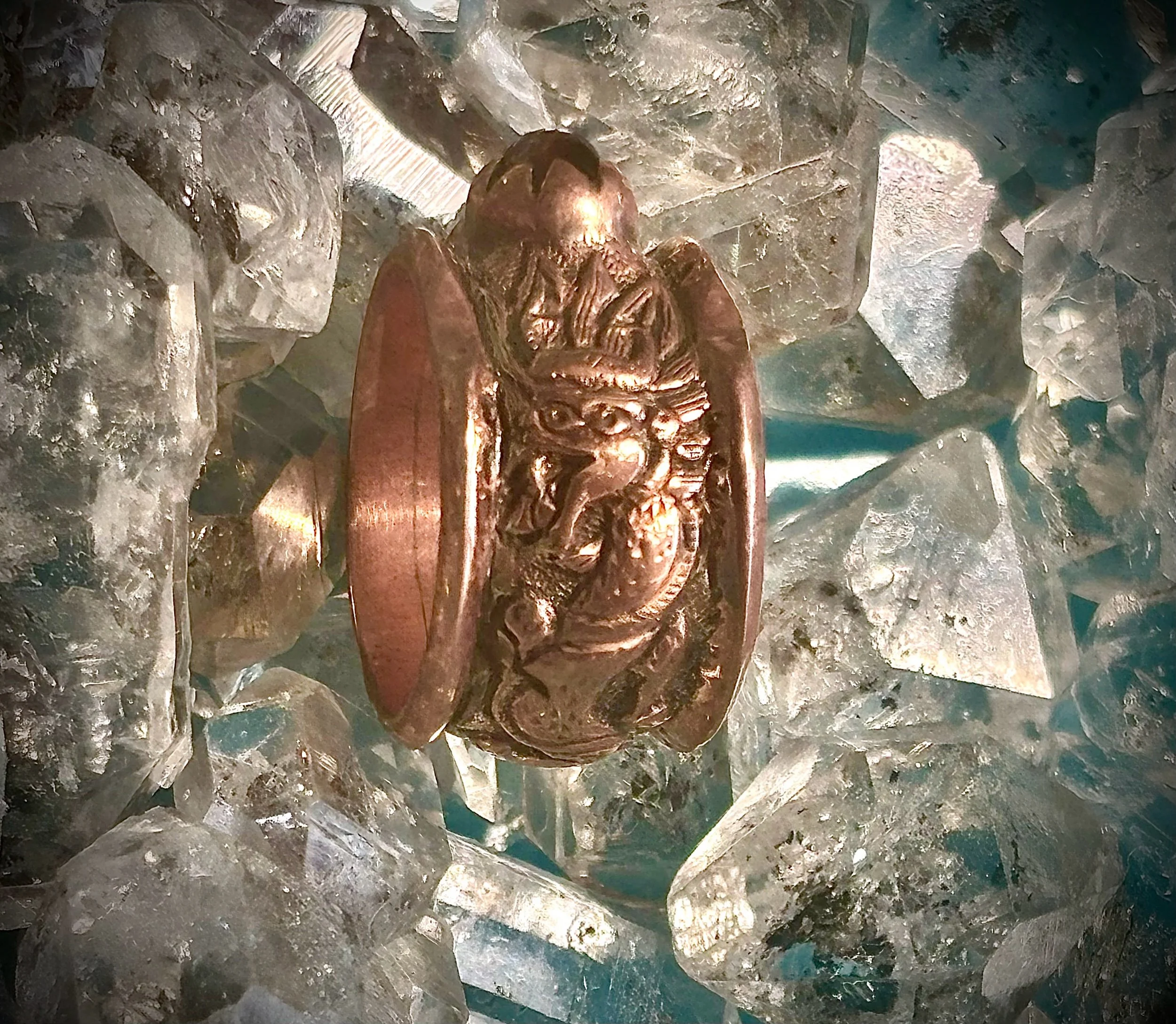 Shop › Trinity dragon size 7 Image 1 of 3 Image 2 of 3 Image 3 of 3 Trinity dragon size 7 $380.00 Beautiful pure copper ring with orange garnet and a hand carved dragon size 7 Add To Cart Added! Beautiful pure copper ring with orange garnet and a hand carved dragon size 7