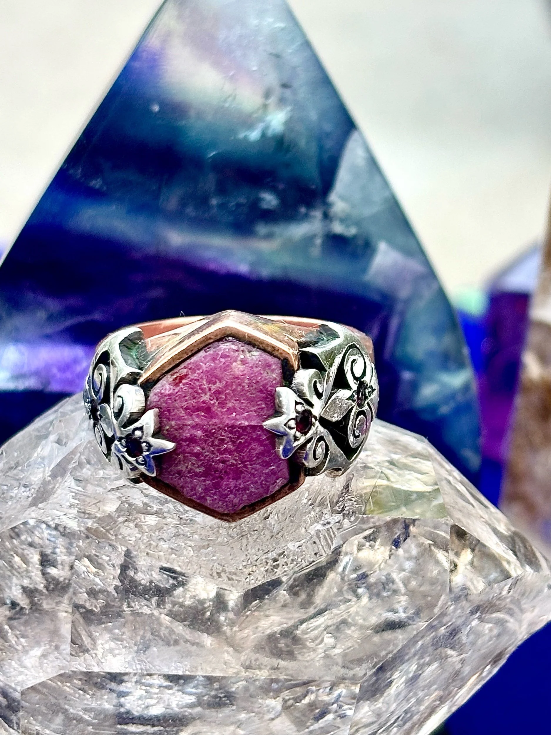 Shop › Flor de Ruby size 11 Image 1 of 3 Image 2 of 3 Image 3 of 3 Flor de Ruby size 11 $450.00 An amazing ring with Ruby from the Madagascar land made in copper and silver handmade with love and care Add To Cart Added! An amazing ring with Ruby from the Madagascar land made in copper and silver handmade with love and care