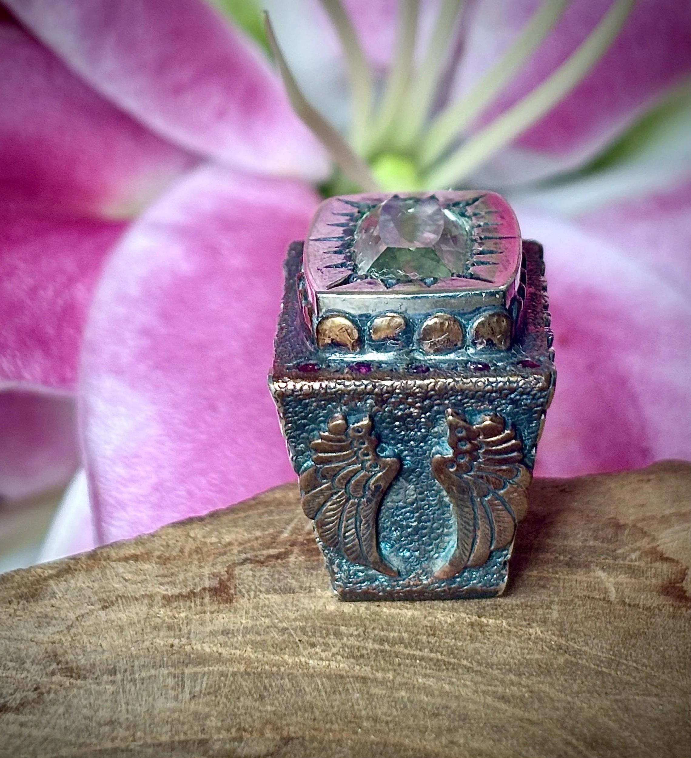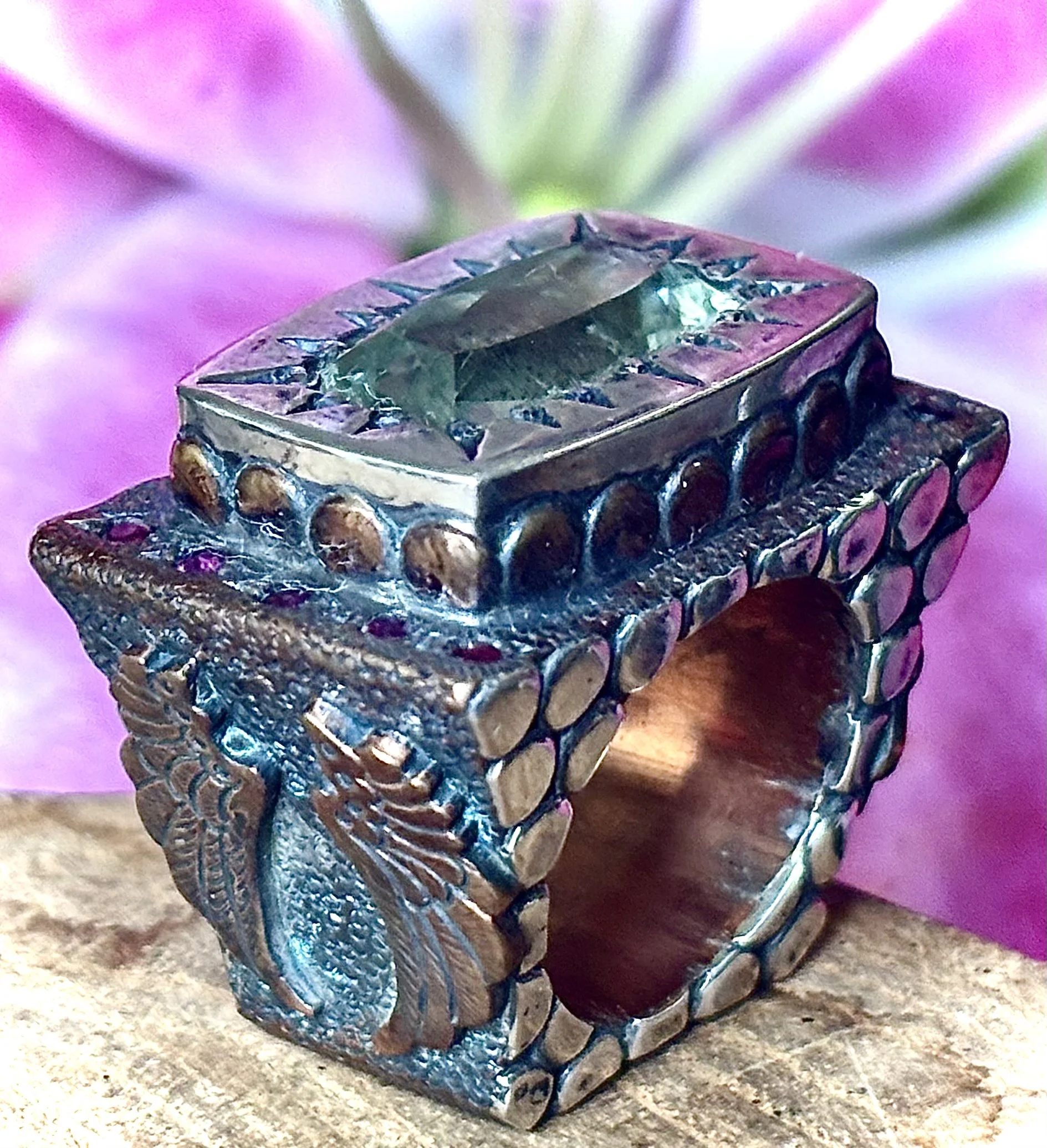 Shop › Green angel size 7 Image 1 of 3 Image 2 of 3 Image 3 of 3 Green angel size 7 $580.00 Perfect ring with green amethyst set in pure copper and silver hand made size 7 Add To Cart Added! Perfect ring with green amethyst set in pure copper and silver hand made size 7