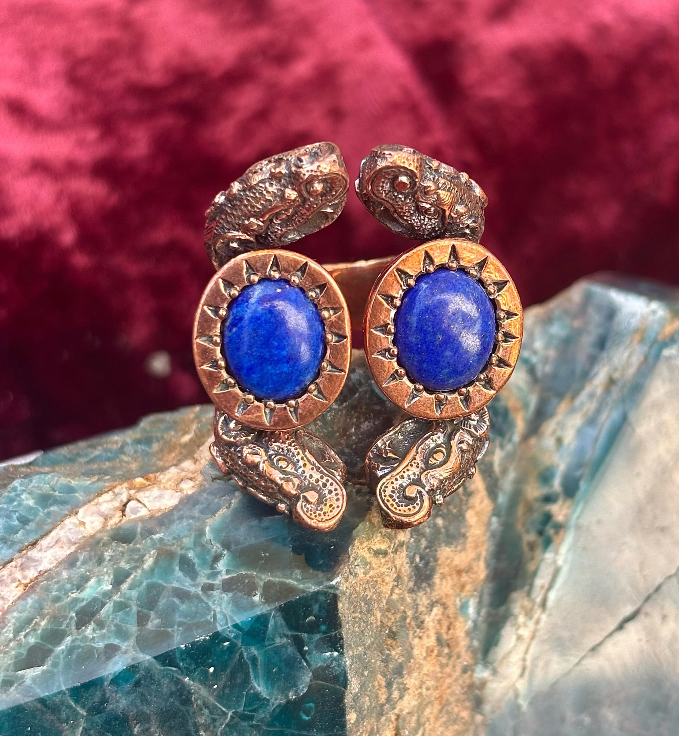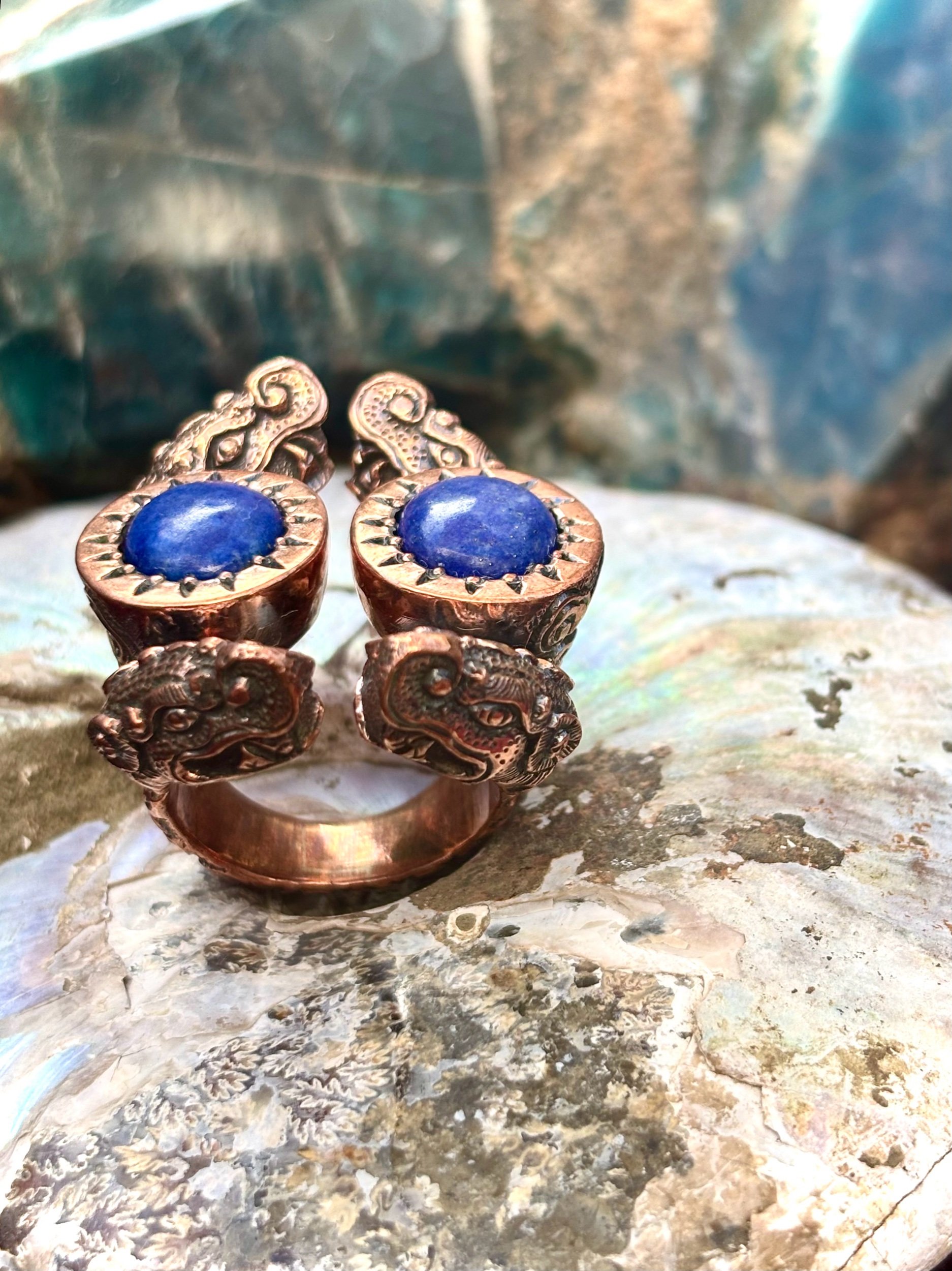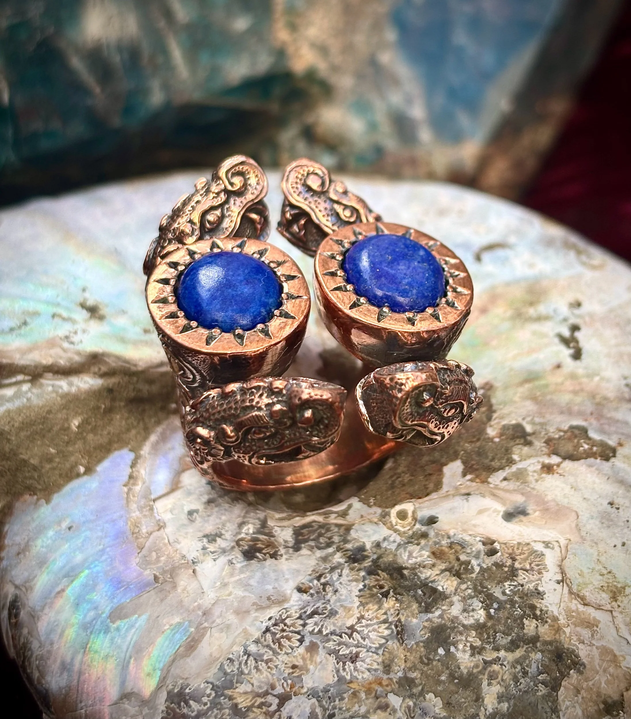Shop › Blue dragon size 8.5-10 Image 1 of 3 Image 2 of 3 Image 3 of 3 Blue dragon size 8.5-10 $520.00 Amazing lapis lazuli dragon ring made in pure copper with love and care Size 8.5-10 Add To Cart Added! Amazing lapis lazuli dragon ring made in pure copper with love and care Size 8.5-10